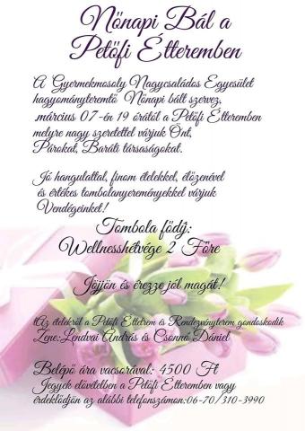 Nőnapi bál a Petőfi étteremben. Facebook esemény a programhoz: https://www.facebook.com/events/203368457704952/